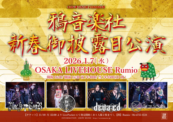 ◆2026/1/7(水)大阪LIVEHOUSE Rumio CROW MUSIC PRESENTS 鴉音楽社新…
